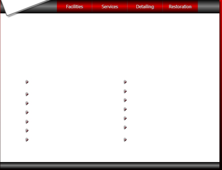 Body repairs and painting (all sizes & paint techniques) Frame adjustments Vehicle tear-down options Complete mechanical optimizations Professional vehicle detailing packages Rust repair/body restoration State-of-the-art equipment |